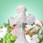 This elegant freestanding lace cross can be used to complete an Easter time mantel display or created to celebrate a baptism or first communion.